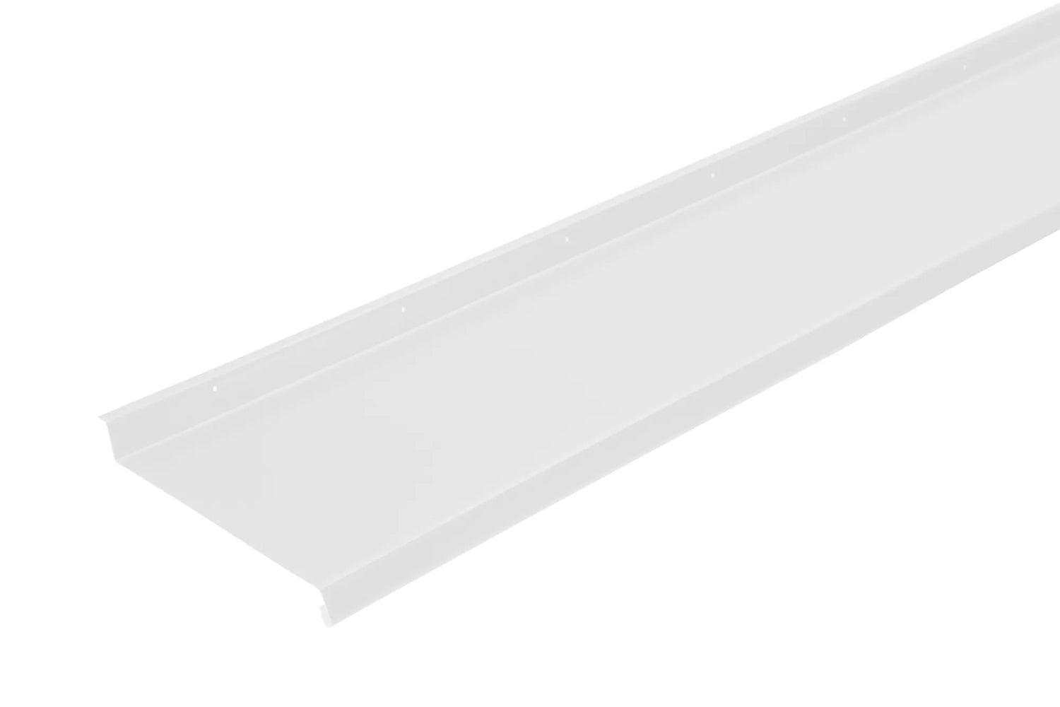 Fönsterbeslag, förhålad. Underbleck i stål tätar underkanten på fönstret för att förhindra vatten att tränga in.