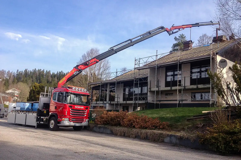 Med hjälp av en Jibb får vi en extra arm i kranen, som förlänger kranens räckvidd och ökar flexibiliteten. Till exempel kan vi i många fall lyfta över taket och in på baksidan.