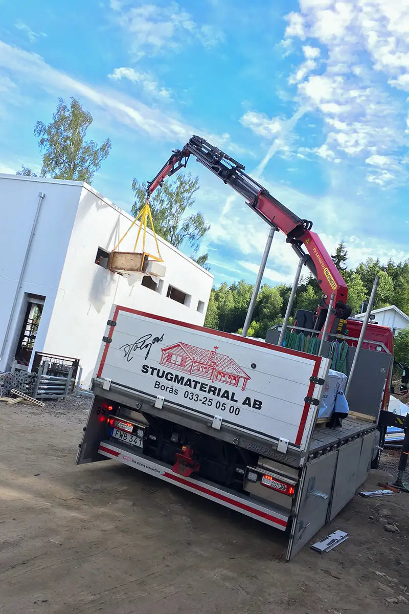 Våra chaufförer levererar dagligen byggmaterial till hem och byggarbetsplatser, både lokalt och på längre avstånd. Gäller det större byggprojekt ordnar vi anpassade leveranslösningar för att arbetet flyter smidigt på byggarbetsplatsen.