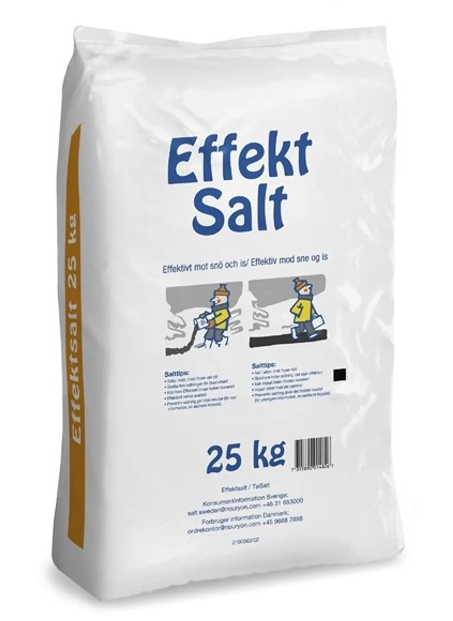 Effektsalt för halkbekämpning. Ett effektivt vintersalt för att salta vägar, gångar, infarter m.m. Verkar snabbt och är speciellt lämplig för smältning av is. För optimalt resultat skall du skotta bort snön innan saltet strös ut.