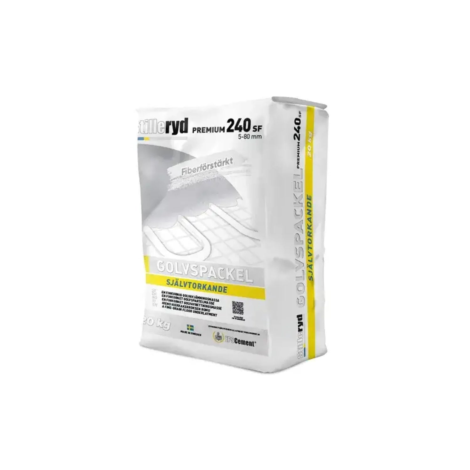 Flytspackel 240SF är en cementbaserad avjämningsmassa för golvspackling. Den klarar 5-80mm skikttjocklek med glasfiberarmering (upp till 100mm med stålarmering).