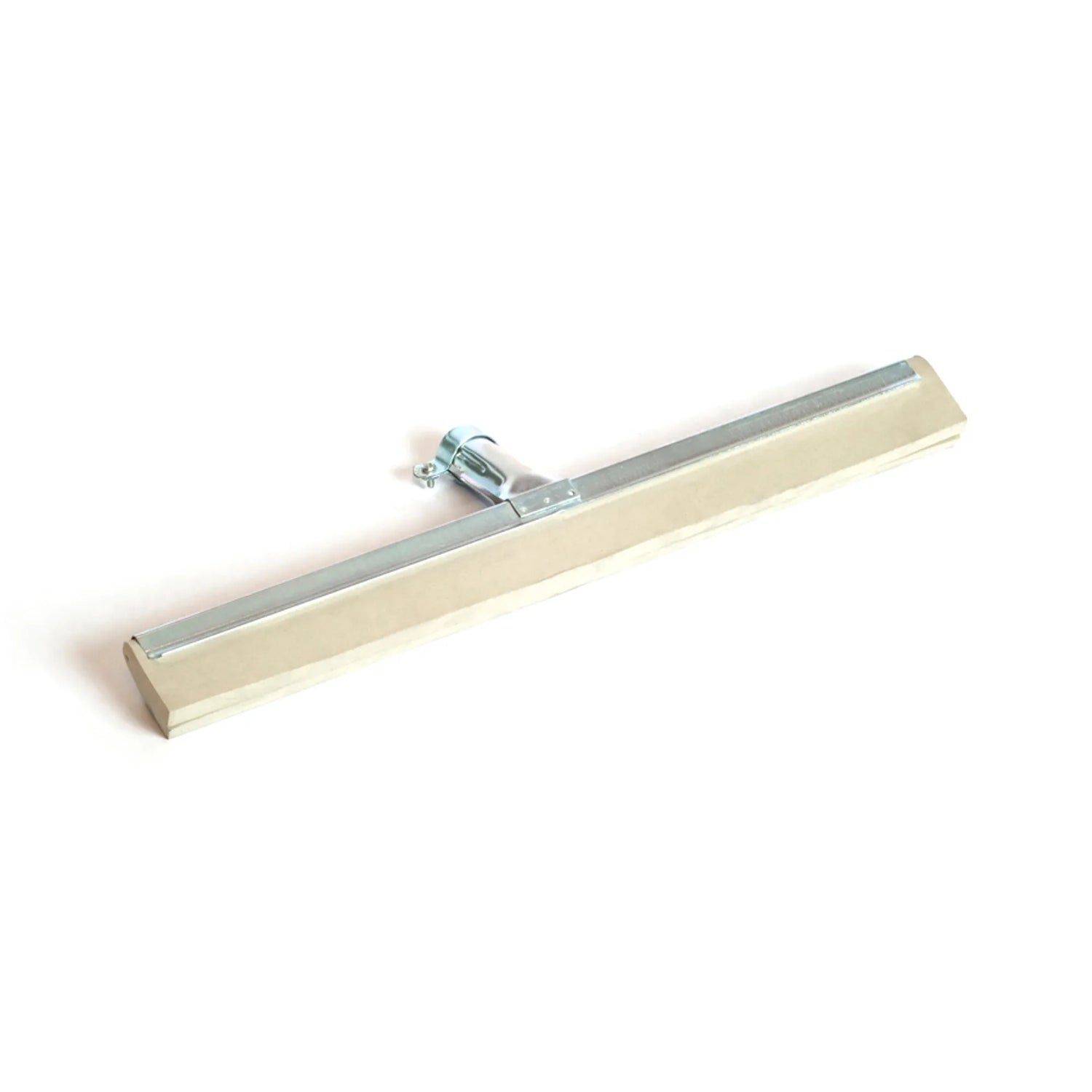 Golvraka av galvaniserat stål med dubelvikt vitt blad av Dura-Flex gummi. Skaftfäste som går att spänna åt. Passar skaft med Ø 24 mm eller mindre. Lämplig i miljöer med höga krav på hygien. Den vita färgen gör att användaren ser när rakan behöver bytas ut. Används vid rengöring i t.ex. simhallar och sanitetsutrymmen.