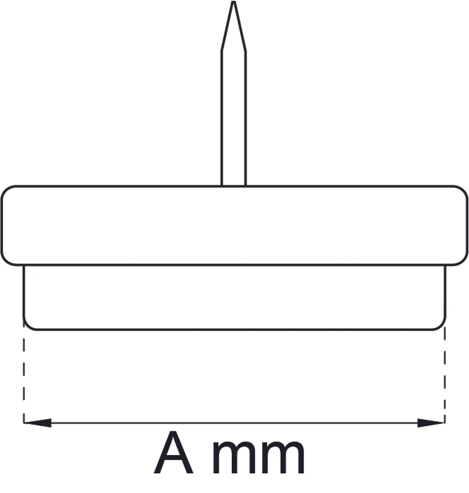 Golvskydd av plast med filt och fast spik. Diameter 26 mm. 8 st per förpackning.