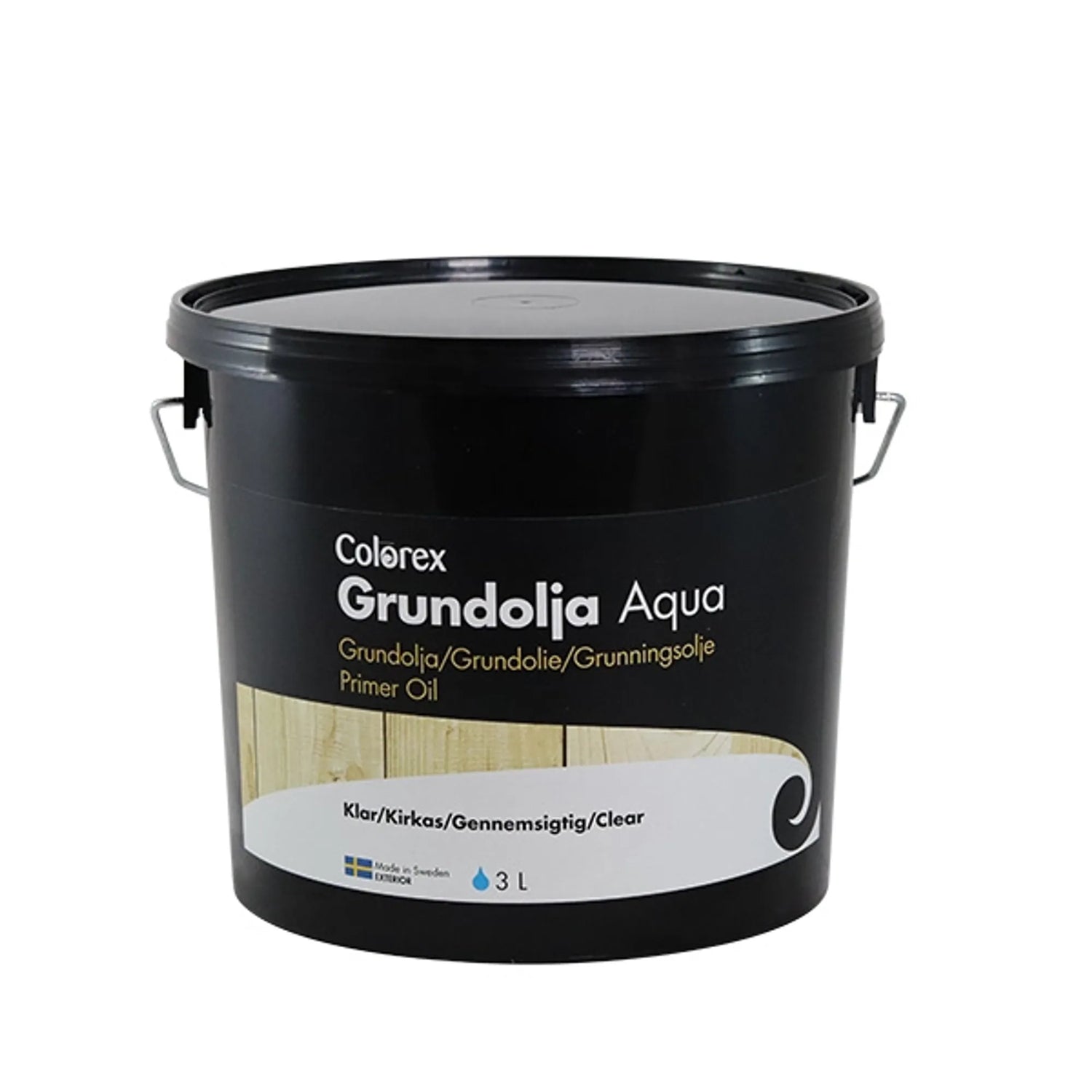 Grundolja Aqua är en vattenburen, penetrerande grundolja för grundning av trä utomhus. Den är speciellt framtagen för att fungera som första behandling i Färgsystem innan färdigmålning med grundfärg och toppfärg. Den föreskrivs som helt nödvändig på ändträ,