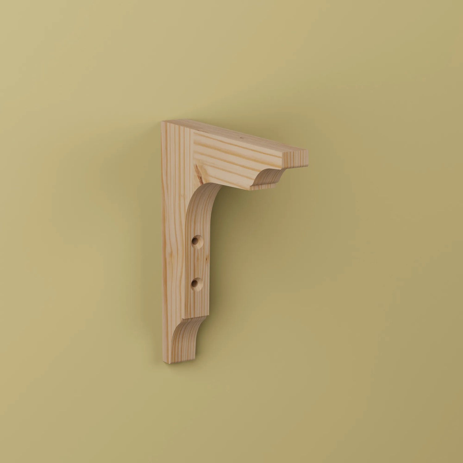 Konsol i obehandlad furu. Förborrade och försänkta borrhål.