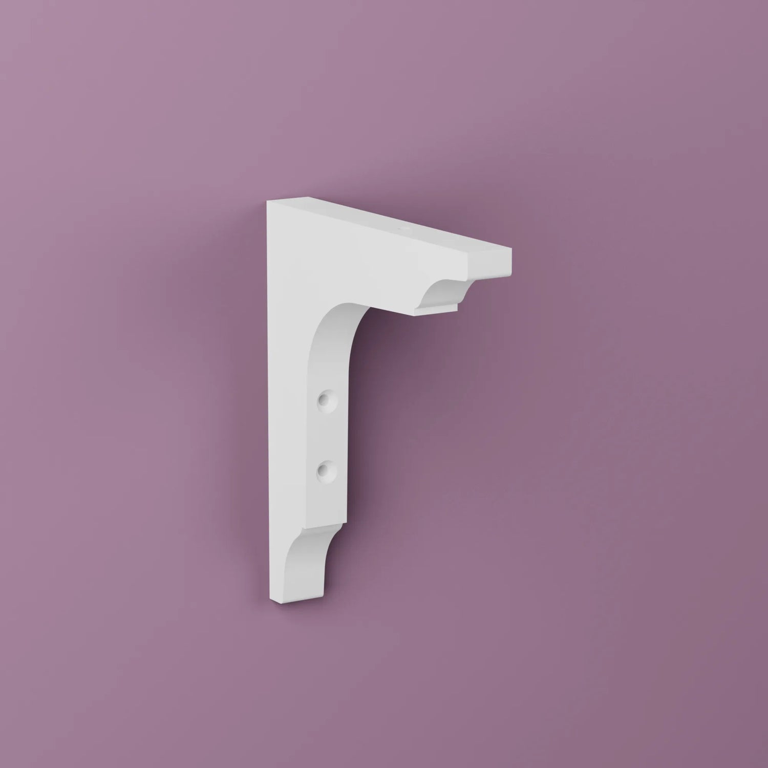 Vitlackad (NCS S0500-N, glans 35) konsol med förborrade och försänkta borrhål.