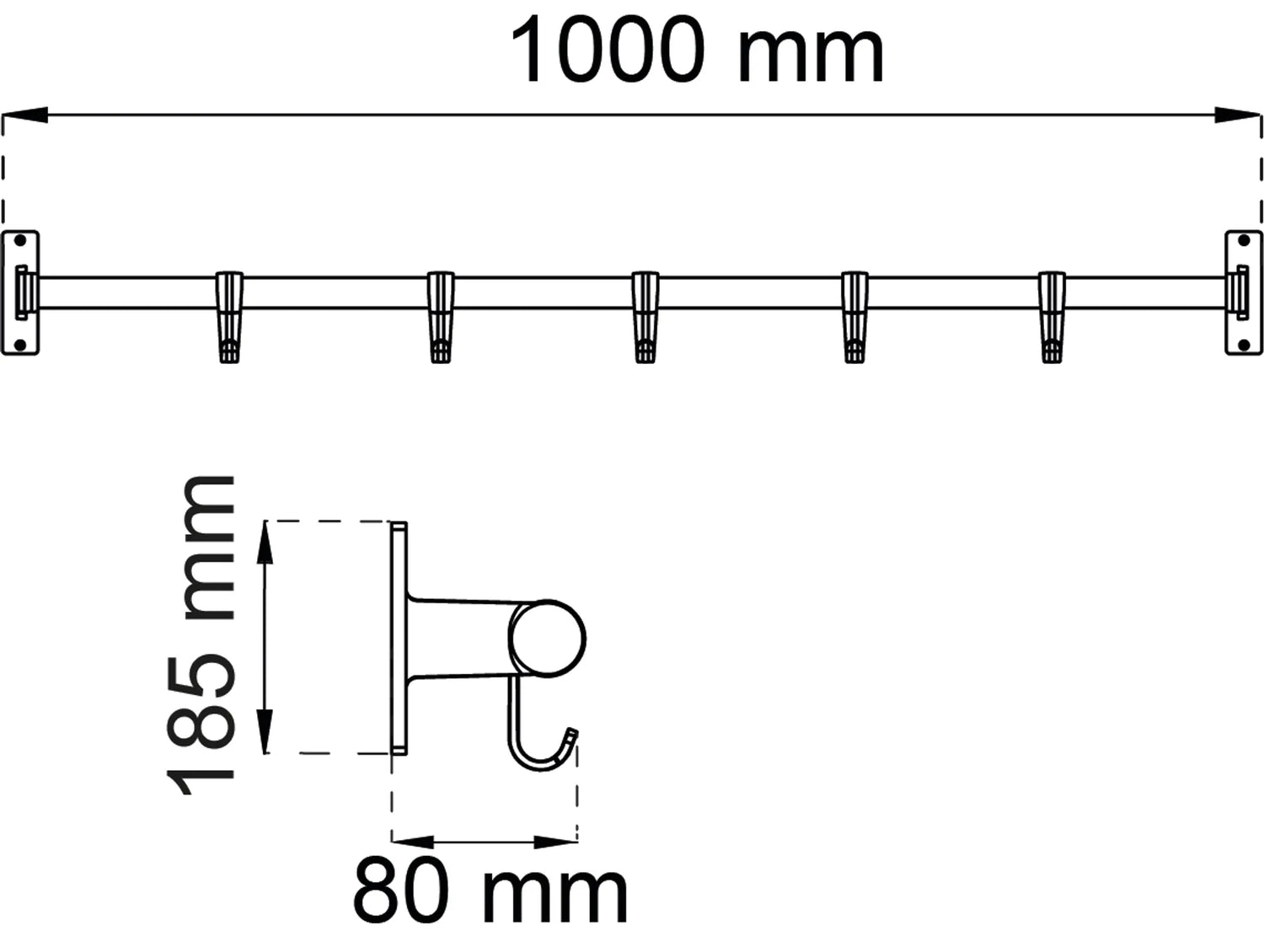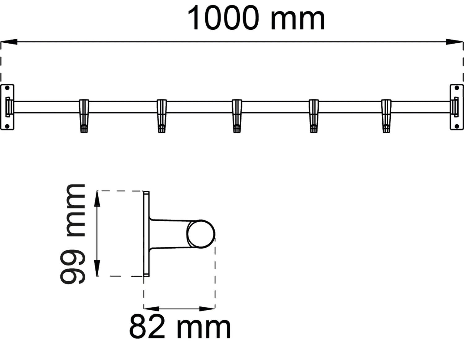 Krokrad med fäste och krokar av aluminium. Stänger av trä. Levereras omonterad. Utsprång 82 mm. Rördiameter 25 mm.