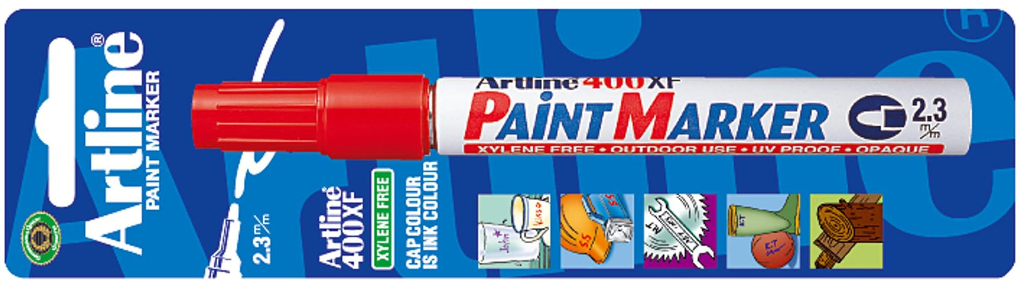 För märkning och textning med krav på hållbarhet och utomhusbruk. Lämplig på svårmärkta material som metall, plast, glas, gummi, etc. Extra färgtäckningsförmåga. Snabbtorkande. Rund spets, diam. 2 mm. Fri från xylen.