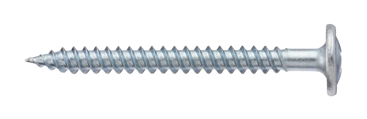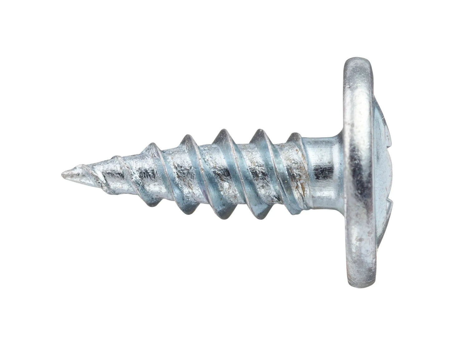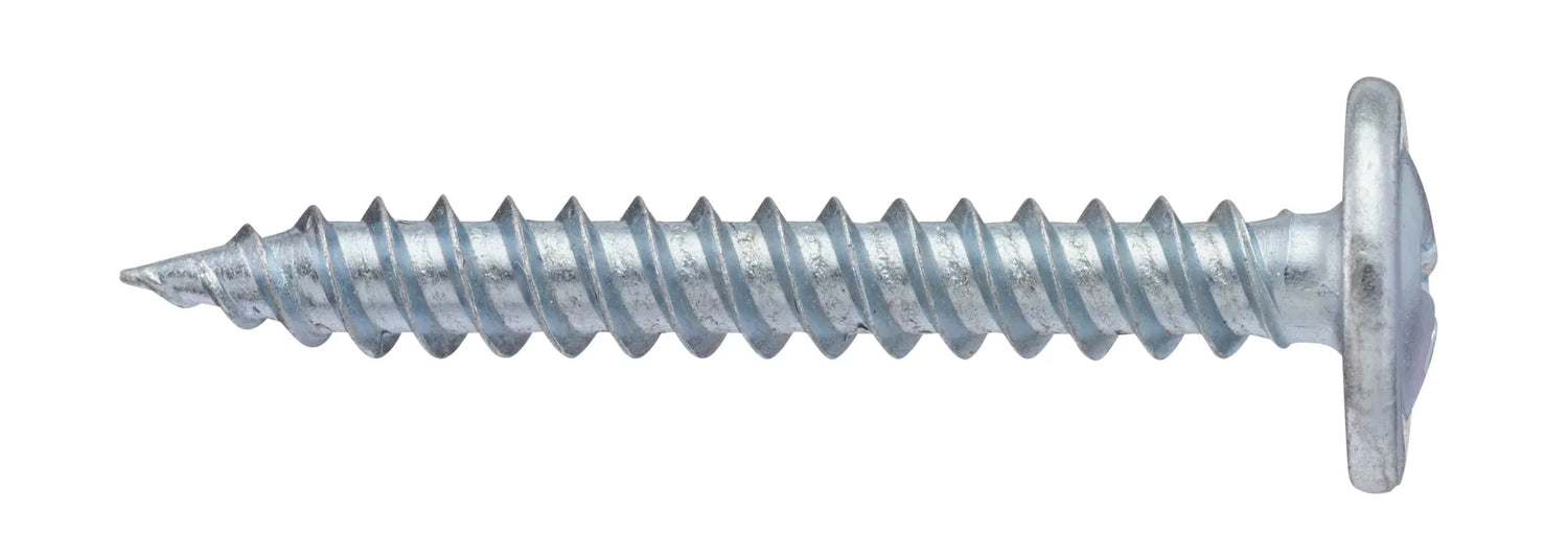 Vass spets med dubbelledande gängor som griper omedelbart i trä- och stålregeln. Lämplig vid montage där ett plant huvud krävs och för att fästa plåt mot plåt.