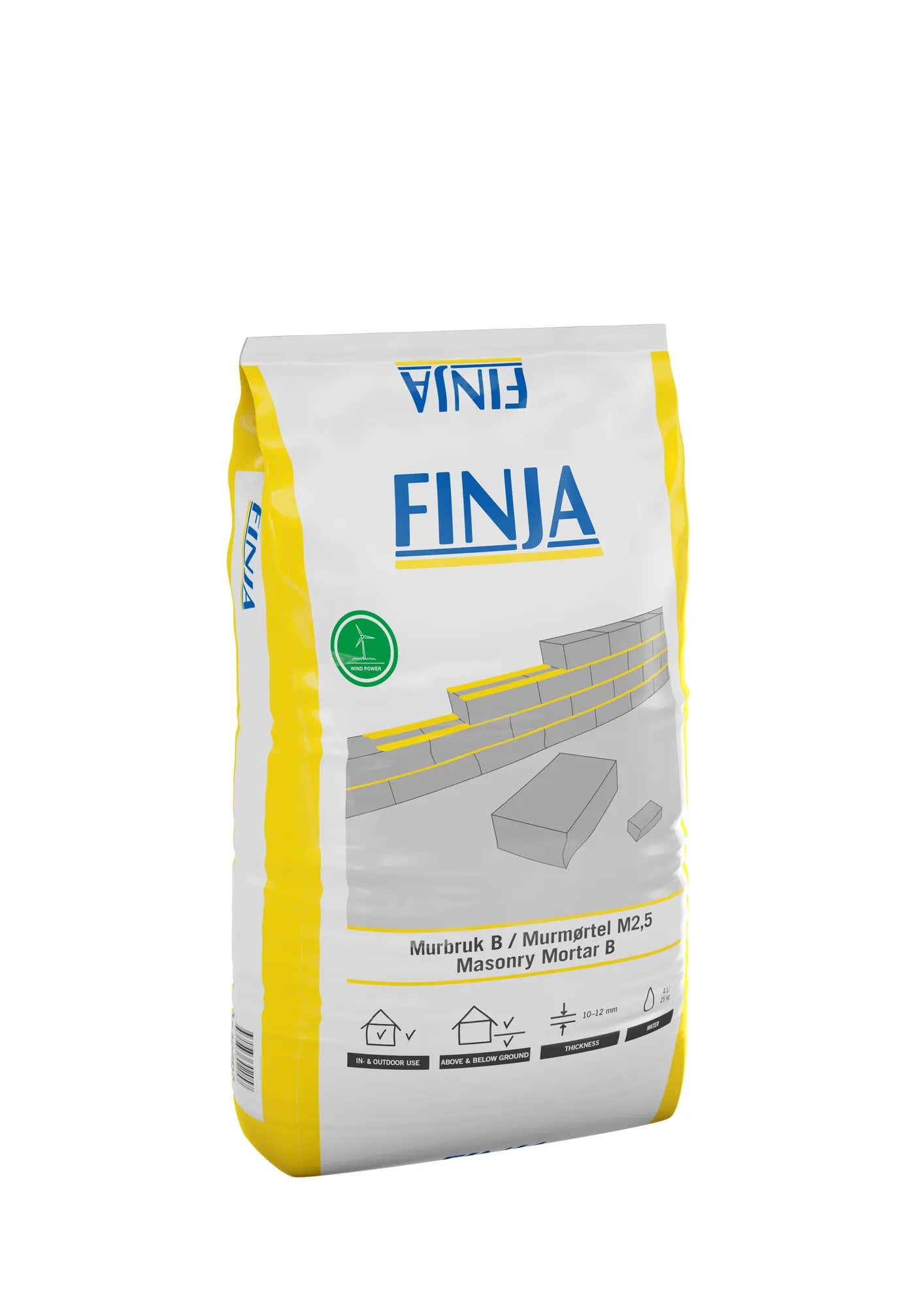 Ett högkvalitativt fabrikstillverkat torrbruk för murning av exempelvis lättklinkerblock, betongblock och tegel. Vid murning av fasadtegel rekommenderas i första hand Finja Färgat Murbruk.