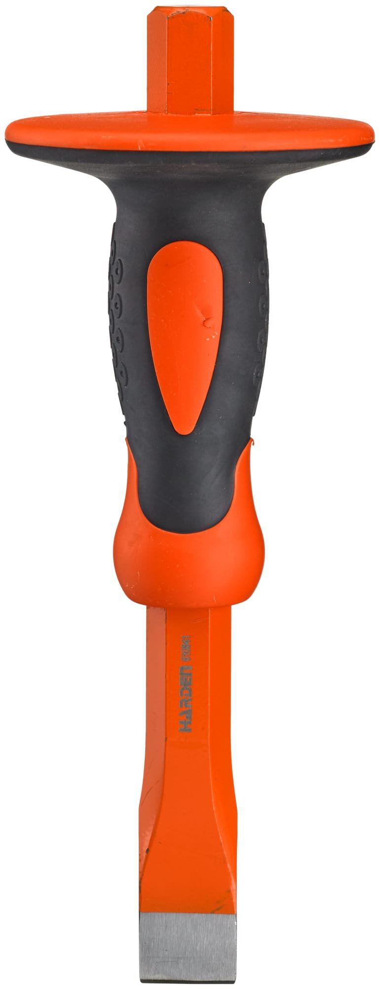 Huggmejsel för sten och betong. Platt mejsel. Mycket kraftigt handskydd av gummi.