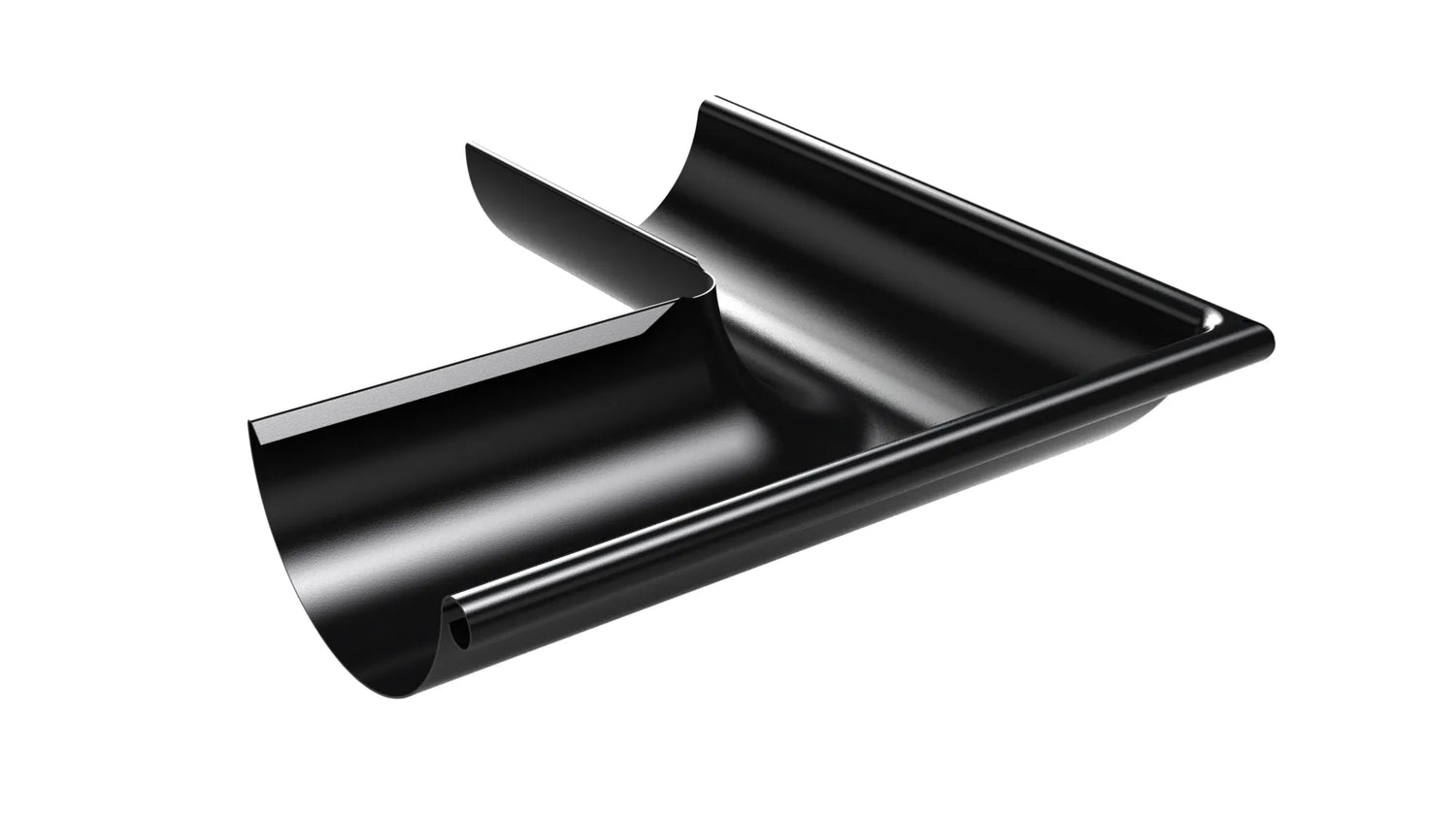 Rännvinkel för utvändigt hörn som är 90°. Rännvinkeln används för att leda vattnet till en annan hängränna.