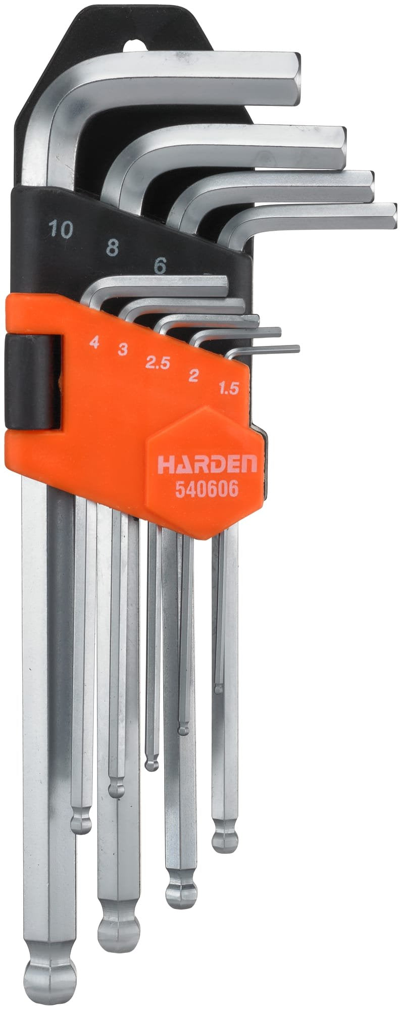 Sexkantnyckelsats av CRV. Smidig vikbar hållare i plast.