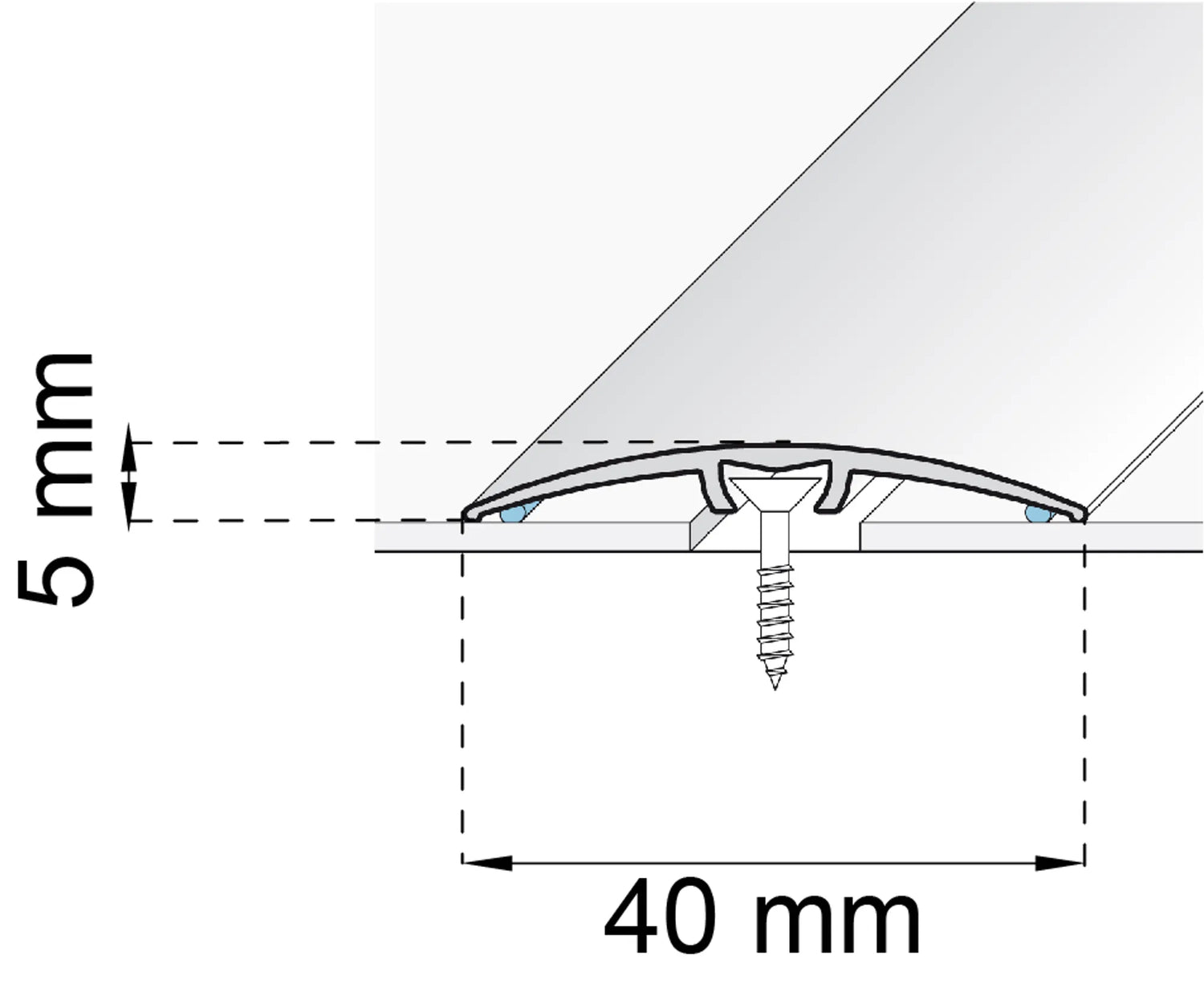 Skarvlist av aluminium med dold fastsättning. Quick mount innebär att man borrar önskat antal hål i golvet motsvarande antal spik i förpackningen. Spikarna träs in i spåret på undersidan av skenan och passas in mot de tidigare borrade hålen med plugg