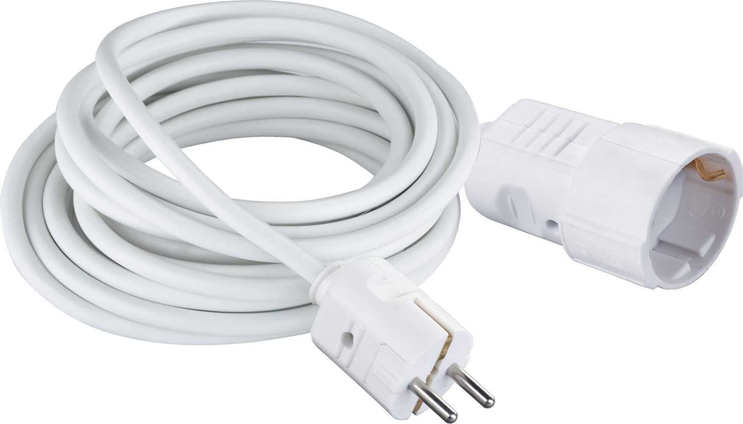 Jordad förlängningskabel för inomhusbruk. Både stickpropp och uttag är jordade.