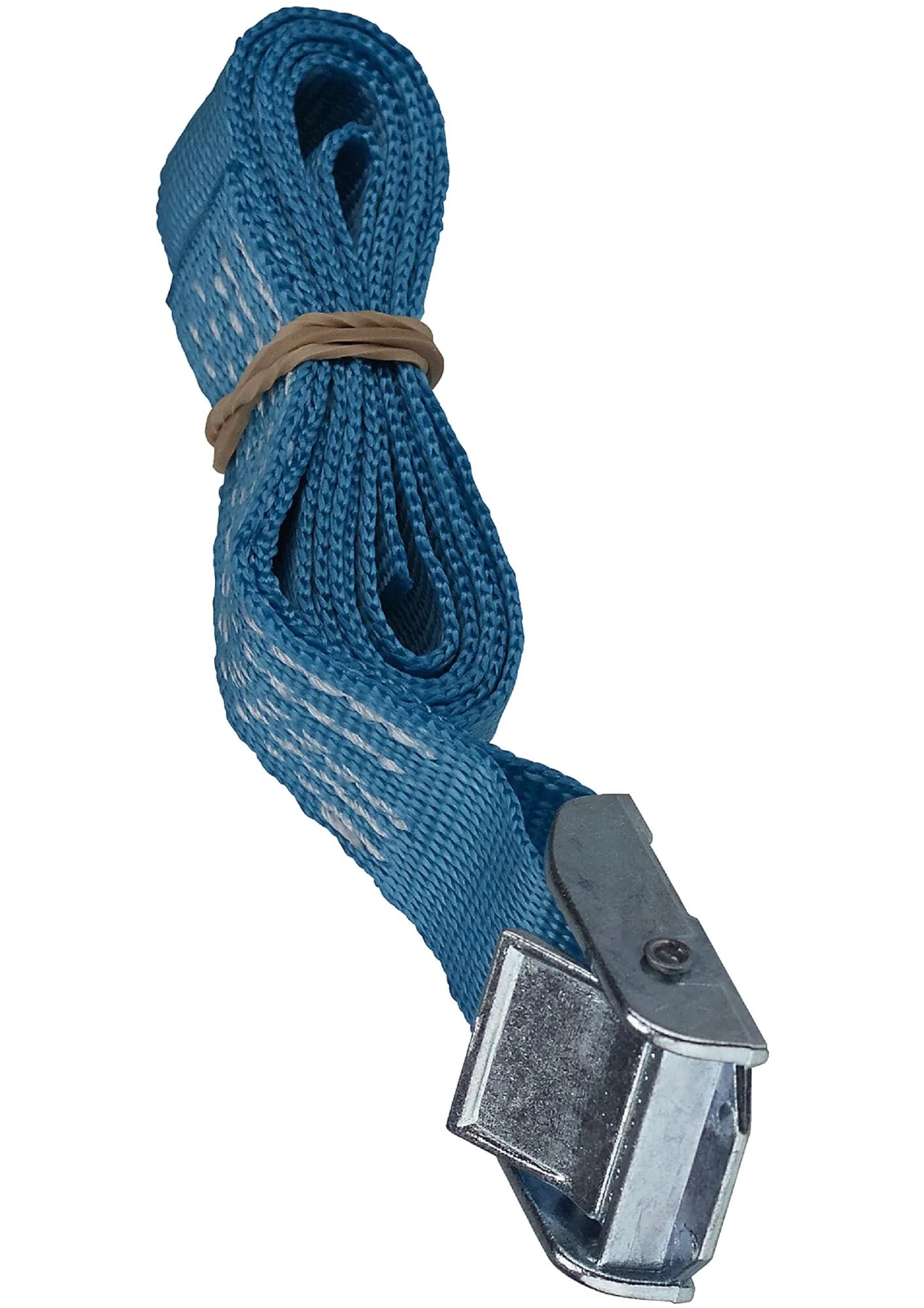 Spännband med kraftigt klafflås för snabb och enkel fastsurrning av mindre gods på takräck, pallar etc. Tillverkat av 25 mm polyesterband.