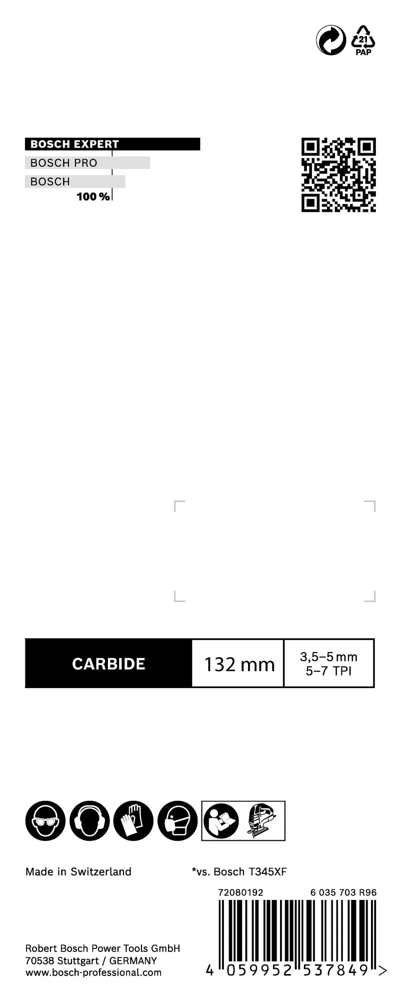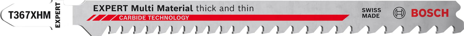 Håller upp till 50 gånger längre än Bosch T345XF-blad - Ibland behöver du ett blad du verkligen kan lita på. Ett sticksågblad som klarar av konstruktionsträ med metall. Eller fiberskivor. Eller härdade skruvar. EXPERT 'Multi Material' är en riktig multimaterialkonstnär som fortsätter såga långt efter att andra sticksågblad har gett upp. Extrem hållbarhet är inbyggd i EXPERT 'Multi Material' med Bosch Carbide Technology – den hårdaste metallen, integrerad i tandstrukturen med avancerad design och tillverkningsteknik. Dessutom har bladet en tandutformning som är optimerad för maximal styrka och hastighet och en progressiv tanddelning som skär genom material i alla tjocklekar, aggressivt men utan att trasa sönder det. Bosch EXPERT ‘Multi Material’ sticksågblad kan såga de tuffaste metallinkapslade trämaterialen och andra tuffa byggmaterial. Det här är bladet du kan lita på. Passar alla sticksågar med T-skaft.