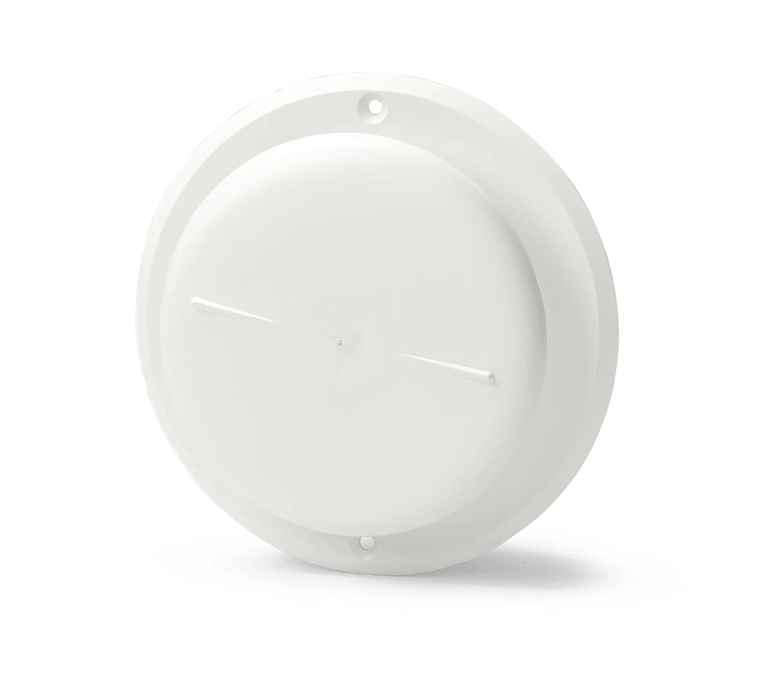 Tallriksventil av plast. Skruvar av plast. Stosmått Ø 150 mm, yttermått Ø 180 mm.