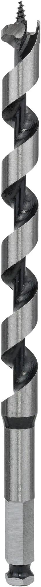 Snabb, exakt borrning - Spiralborret passar perfekt för snabb, exakt borrning av genomgående hål, förborrning för sparrspik och djupa träpluggshål. Det tåliga borrhuvudet med självindragande spiralspets drar igenom hela borrlängden för snabb och smidig precisionsborrning. Rak borrning och stor spåntransport, plus högre hastighet tack vare borrets optimerade lågfriktionsspiral med massiv kärna. Dess optimerade förskär och precisionsslipade huvudskär ger rena exakta hål. Det passar perfekt för byggföretag, byggnadssnickare och takläggare, och lämpar sig för mjukt och hårt trä Borret har ett sexkantsskaft och fungerar till alla skruvdragare med 13 mm chuck. Sexkantsskaft för maximal kraftöverföring hos standard trebacksborr och sexkantiga skruvdragarchuckar.